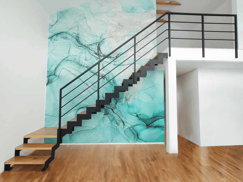 Biegi prowadzą wangi stalowe formujące charakterystyczny rysunek zygzaka. Konstrukcja samonośna zapewnia sztywność bez dodatkowych podpór, a podest porządkuje komunikację i nadaje rytm przestrzeni.