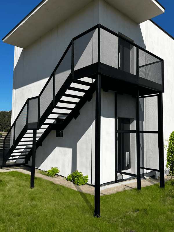 Balustrada z siatki cięto-ciągnionej w stalowej ramie jest lekka wizualnie, a jednocześnie odporna na obciążenia i łatwa w utrzymaniu. Geometria oczek podkreśla techniczny charakter całości.